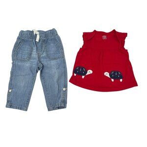 Baby Girl's - Jeans, Red Top, Leggings, Turquoise Bodysuit - Size 12M and 6-12M