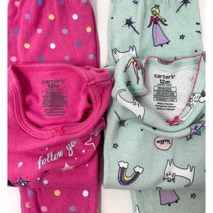 Baby Girl's Pajamas - 2 sets - 1 Pink, 1 Light Aqua - Size 12 Month