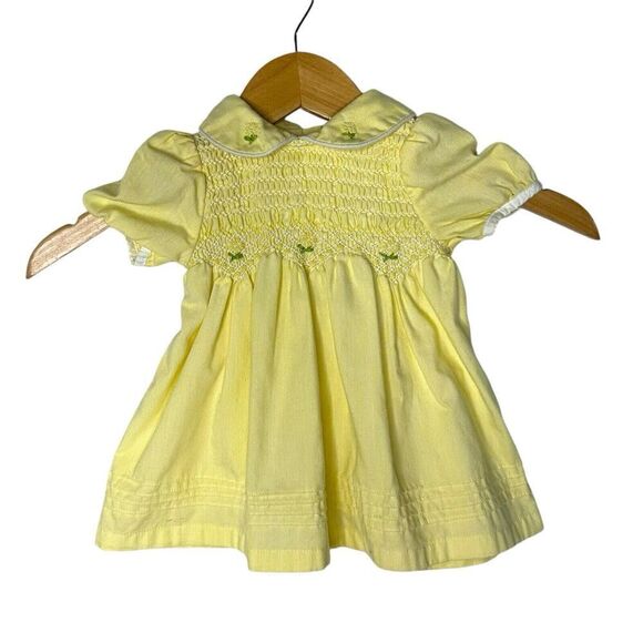 Baby Girl’s Size 3-6 Mo BT Kids Smocked Dress Outfit Yellow Peter Pan Collar