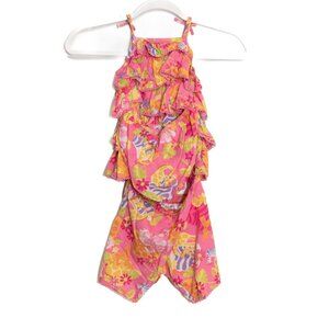Baby Girls Size 3-6M Floral Tiered Ruffle Outfit & Diaper Cover Set - Pink & Mul
