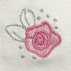 Adorable, excellent condition baby girls size 6-9 months 2-piece matching shirt & pants outfit. The shirt is a long sleeve white tee with 2 buttons in the back for easy changes, a pink collar and a pink and silver embroidered rose. The pants are black with an elastic waistband, 2 pockets in the front, and a matching pink and silver embroidered rose. Perfect for a cute and stylish look. The shirt is made of 100% cotton and the pants are made of 97% polyester and 3% spandex material. Smoke free home. Washed in hypoallergenic detergent & steam sanitized prior to shipping. Accepting reasonable offers on all items and bundles. All proceeds help support the family of a disabled veteran.