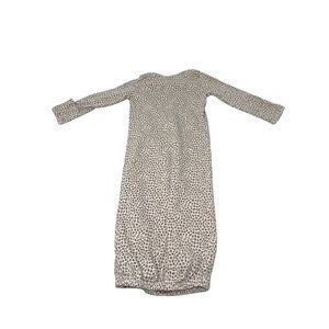 • Tan Sleep Sac with Tiny Black Design has Elastic at the Bottom and Attached Fold Over Mittens with a Tiny Ribbon Bow at the Neck