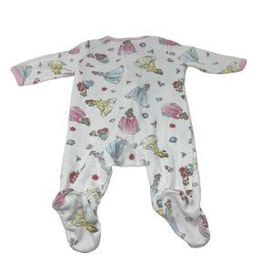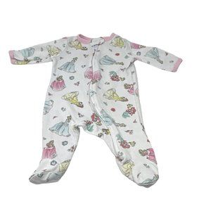 • White Sleeper with Disney Princess Design in Pastel colors of Yellow, Aqua, and Pink and Zips down Front
