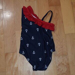 Baby Girls' Sz 0-6m One-Piece Anchor Print Swimsuit - GREAT CONDITION