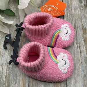 Baby Girls Teddy Knit Rainbow Comfy Soft Slippers Shoes Size 3