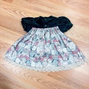 Baby Girls Vintage Dress 12M 90s Christmas Holiday Velour Floral Rose Lace Green