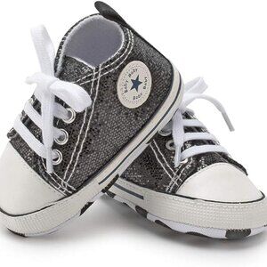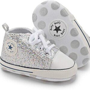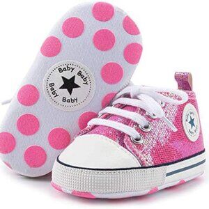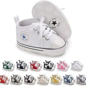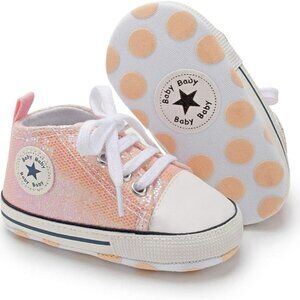 Baby Girls and Boys Canvas Sneakers Soft Sole High-Top Ankle Infant First Walkers Crib Shoes, 0-6 Months, 6-12 Months, 12-18 months