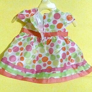6-8 M George Polka Dot Print Baby Dress with Cute Bow with diaper cover