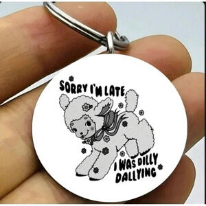 Baby Goat Hot I'm Was Busy Dilly Dally Funny Cute Art Quote Keychain