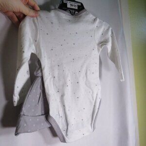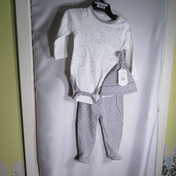 Baby Gray Stars Hat - Cap, Footed Pants & Bodysuit Long sleeve 3pc NEW cotton