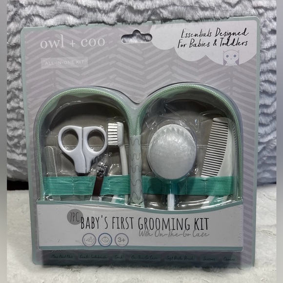 The Baby Grooming Kit offers essential tools in a charming mint and white design. Perfect for keeping your little one neat and tidy.