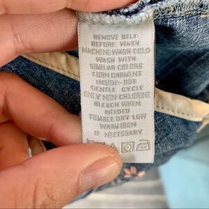 This Baby Guess denim ruffle jumper dress is In excellent condition. No stains or holes. So many cute details. 9.5” pit to pit, 17” length.