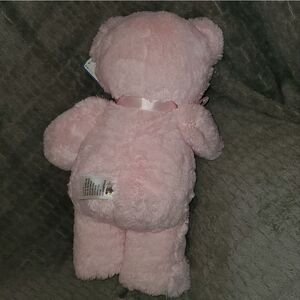My First Teddy is a soft and huggable companion that’s always ready for naptime, playtime, and any time in between. Designed with satin accents on teddy’s feet, ears, and decorative bow. This 15” size in pink is a perfect height for cuddling or for a unique nursery decoration. Coordinates with matching ring rattles, sound toys, and more for a great newborn or baby shower gift idea.