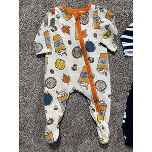 1. Mud Pie zip-up sleeper (Size 0–3M) – pumpkin spice latte + fall leaves print.