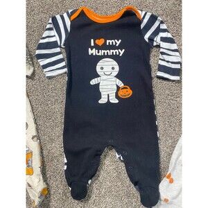 Adorable lot of 3 Halloween-themed baby outfits, perfect for spooky season!