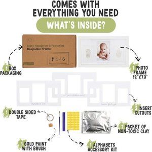 Ideal Baby Shower Gift - If you are looking for a baby shower gift and don't know what to get, this is it! Get a gift that will be cherished for a lifetime and capture those cute memories. This Baby Handprint Keepsake Kit comes with everything you need; no additional purchase required to complete this beautiful Baby Handprint Art Picture Frame.