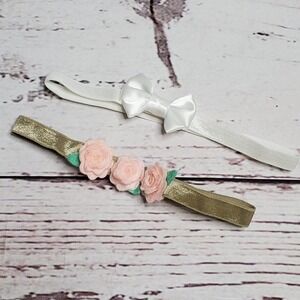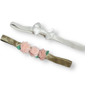 Features : white headband with tiny bow, tan headband with pink felt flowers, newborn, photography, hair accessories