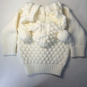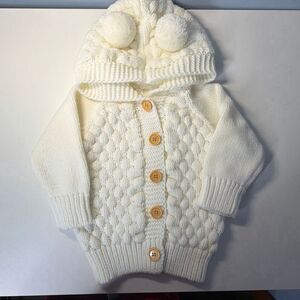Baby Hooded Cardigan Sweater Pom Pom 6-12 mo Ivory Acrylic