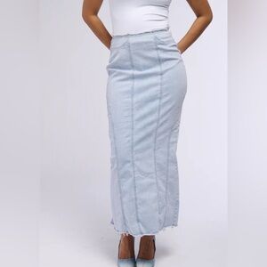 This elegant light blue maxi skirt is perfect for any occasion. Its chic design adds a touch of sophistication to your wardrobe.