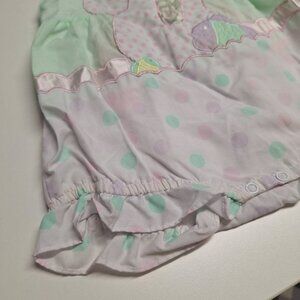 Baby Infant Romper Dinosaur Girls 18 Months VinTage Green Pink Lace Bow Overalls