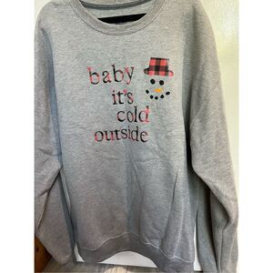 Homemade “baby it’s cold outside” grey crewneck sweatshirt. Size large.