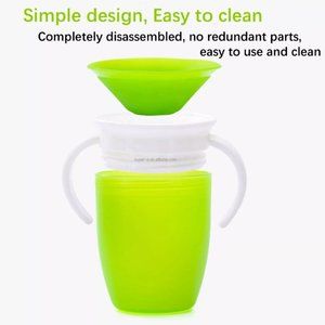 Anti-splash,Easy to clean, 360 degree leakproof,non-slip handle for easy child grip.