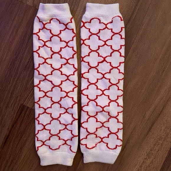 Baby Legs Girls White and Red Patterned Leg Warmers