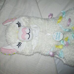 Don't settle for cheap, scratchy Party City costumes! This soft costume has an attached hood with an adorable llama face and ears. Full Zip makes for easy on/off and potty breaks/diaper changes. Body has a tail and a "No Prob-Llama" tag on zipper pull. Super cute tassels and sweet face details. Fast Shipping.