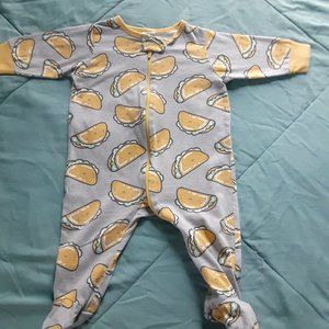 Baby Long Sleeve Bodysuits Footies Lot Of 4 Sizes 0-3-6 Months Taco/Burger