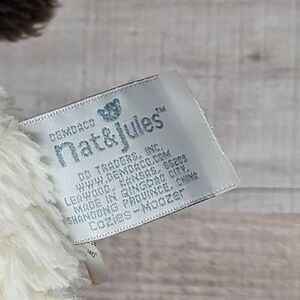 Nat & Jules Demdaco cow infant lovey has a rattle in the plush head and is the perfect size for baby to clutch as a comfort security blankie. Measures approximately 13.5 inches long and is in good gently loved condition.