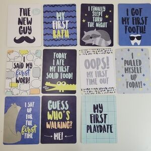 These are baby milestone cards. They have 1 month-1st year on one side of the cards and different milestones on the other side. **please note that this set IS MISSING the 7TH MONTH milestone card**