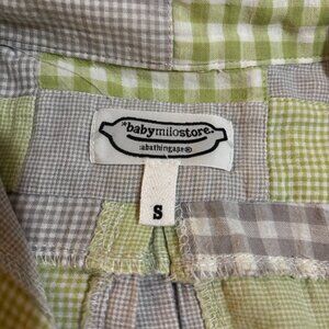 Baby Milo is a character within the BAPE streetwear brand, first appearing in 1999. This rare, AUTHENTIC patchwork button-down shirt is a 2006 original from Baby Milo, in a size small!