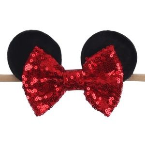 ✨Minnie Ears Nylon Headband are made with Velvet Ears and Sequins Bow attached to Nylon Elastic Band.