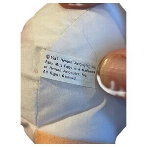 The product is a vintage 1987 Baby Miss Piggy plush toy from the Muppets family, created by Jim Henson's Henson Associates. This small-sized plush is a collectible item that captures the charm and nostalgia of the beloved character. Made in China, this cuddly toy is a perfect addition for fans of the Muppets franchise or vintage toy collectors. With its iconic design and sentimental appeal, this Baby Miss Piggy plush is sure to delight fans of the classic Muppets television show.