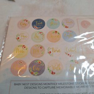 Baby Nest-Baby Monthly Milestone Stickers Set of 15 4" Stickers New! Floral Gold