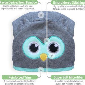 Baby Owl Hooded Towel | Organic Bamboo | Free Cloth | All Ages | Unisex | NEW