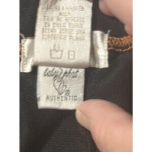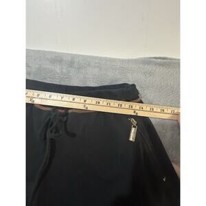 The Baby Phat Women's black and gold joggers in XL size feature a relaxed fit with a drawstring closure for a comfortable and customizable waist. Made of a blend of spandex and cotton, these joggers offer stretch for ease of movement and are perfect for casual or travel occasions. The black color with gold accents adds a touch of retro and hip hop style, making them a unique and trendy addition to your wardrobe.