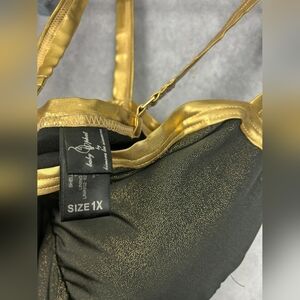 Baby Phat Black & Gold Metallic Sparkle Logo Print One Piece Swimsuit - Size 1X