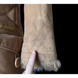 Baby Phat Girls Brown Tan Faux Fur Coat Size Small Y2K Penny Lane Embroidered