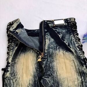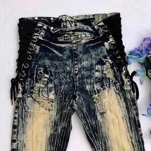 NWT. Distressed Stone Wash Skinny Jeans for Juniors/Women Size 7/8. Gold zipper with brand logo back for closure, mesh with adjustable straps sides, "wrinkled" style, embroidered gold brand logo front middle waist. Please note, there are no internal brand/material/care tags. Pictures are part of description.