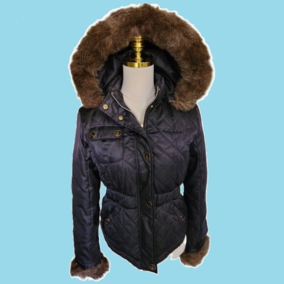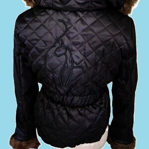 Baby Phat - Quilted Puffer Jacket, w/Leopard lining, Black, USED, size S