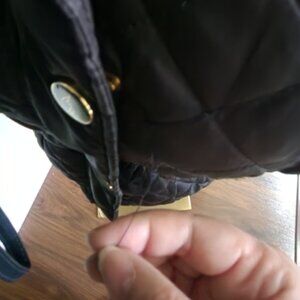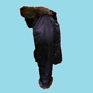 This is a Baby Phat Puffer Jacket (black), with detachable hood and cuffs (fur trimmed) , USED (good condition), Size S (2-4), quilted, thread came off on some parts. nothing broken, no stains, no tears, no smell. at least 15 years old (bought this before or around 2010), clean. (washed before list here) , Leopard print lining (black lining inside the hood and sleeves), machine washable (the instruction recommends removing the hood and cuffs before washing (I didn't know that and accidentally washed them all, but it was Ok, washed all of them in cold water, and delicate cycle), Shell, Lining, and Filler made with 100% polyester, and Faux-fur is made with 85% acrylic and 15 % polyester