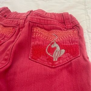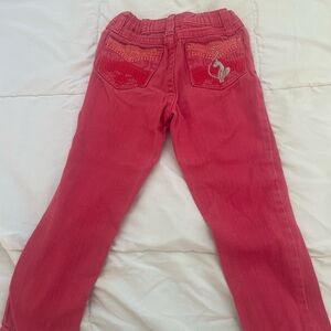 These vibrant red jeans from Baby Phat offer a stylish and comfortable fit with their straight leg design. Crafted from durable fabric, they are perfect for everyday wear and make a bold fashion statement.