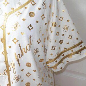 Baby Phat VTG Y2K Gold LV Allover Logos Jersey Style Shirt Top M NWT