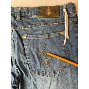 Baby Phat Women Denim Shorts size 11 Blue Mid Rise Stretch Chino Boyfriend