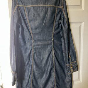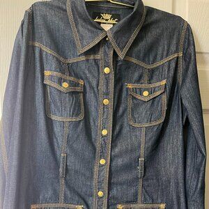 Baby Phat Womens Denim Gold Trim Snap Front Long Sleeve Short Y2K Dress Size XL