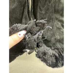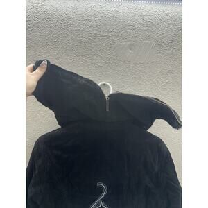 Baby Phat Womens Jacket Size Small Black Leather Faux Fur Lined Hooded ZipUp Y2K