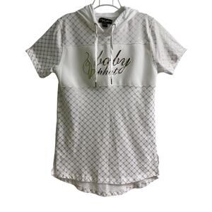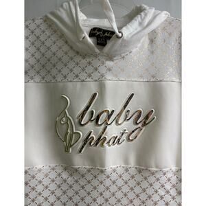 Baby Phat Y2K VTG Gold Lettering White Cotton Blend Short Sleeve Hoodie Size M