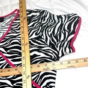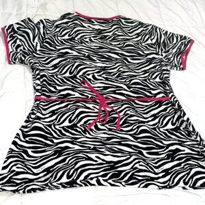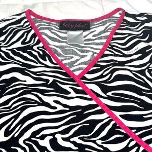 Baby Phat Zebra Print Wrap Scrub Top W/ Pink Trim Short Sleeve Womens Size L