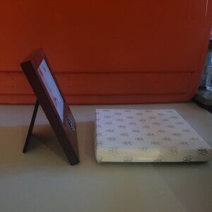 Baby Photo Frame, DAX, Fits 6×4 photo, Wood Finish, Brass Baby Shoes, New With Box, Adorable!